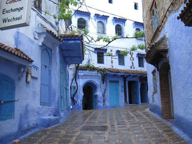 Chefchaouen é uma cidade em Marrocos famosa por sua tonalidade azul. Embora tenha sido fundada em 1471, recebeu esta cor em 1492, quando recebeu judeus que escapavam da inquisição espanhola, e que trouxeram a tradição de pintar edifícios em azul.